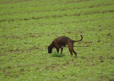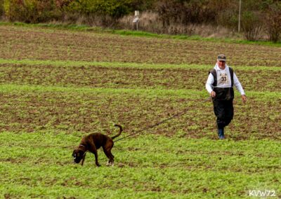 Letztes Wochenende fand in Nordhausen die BK-Deutsche Meisterschaft FCI-IFH 2 2023 statt. Horst und Unah mussten gleich am ersten Tag ran, da Horst die Gruppe 1 und die Fährte Nr. 5 gezogen hat.