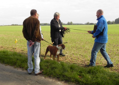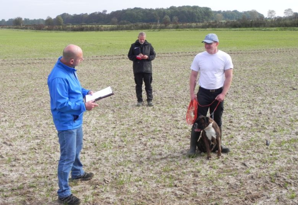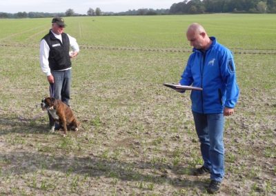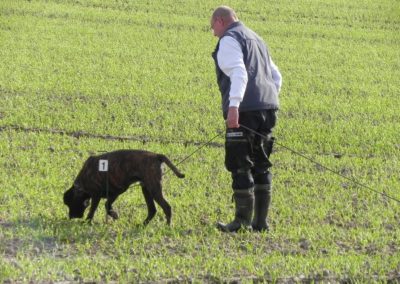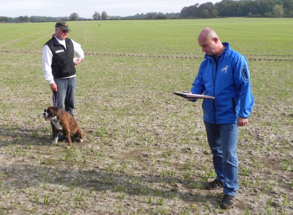 Das Fährtengelände bestand aus kurzer Neusaat und der Boden war, bedingt durch die längere Trockenzeit fest und trocken aber durchaus nicht problematisch für erfahrene Fährtenhunde, die sich einer Landesmeisterschaft bzw. Deutschen Meisterschaft stellen.