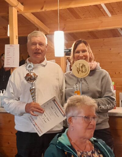 Die Beiden mussten nach der Auslosung wieder einmal als 1. Team starten, aber das scheint ihnen Glück zu bringen. Sie haben sich vorzügliche 97 Punkte erarbeitet und konnten sich somit nach 2021 und 2022 auch in dieses Jahr den 1. Platz sichern und sind zum 3. Mal in Folge Landesmeister geworden.