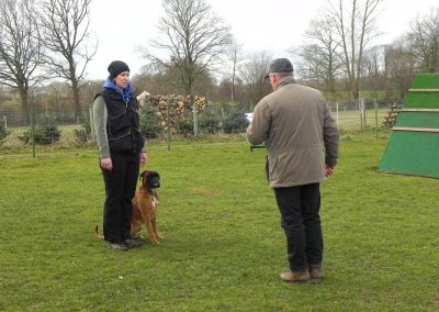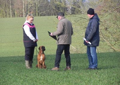 Auf dem Platz kamen dann die schon sehr aufgeregt wartenden HF mit ihren BH-Hunden zum Prüfungseinsatz.