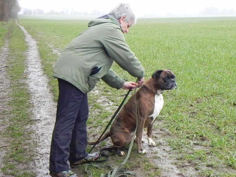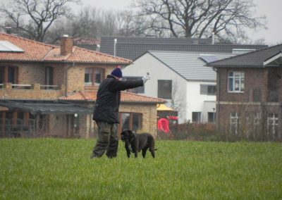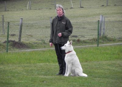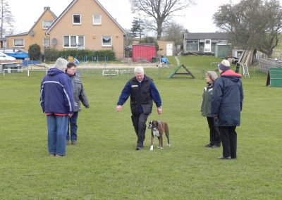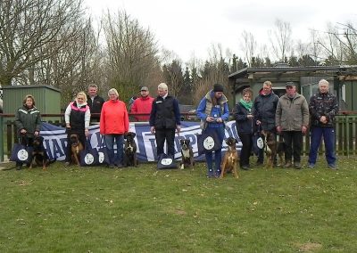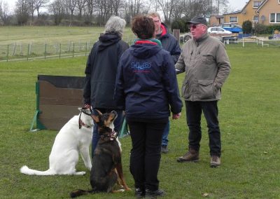 Leider konnten nur zwei die Prüfung bestehen. Die anderen scheiterten an der Ablage, dem Fußgehen und damit verbundenen weglaufen und spielen auf dem Platz und den vergeblichen Bemühungen der HF ihre Hunde wieder zur Ordnung zu bringen.