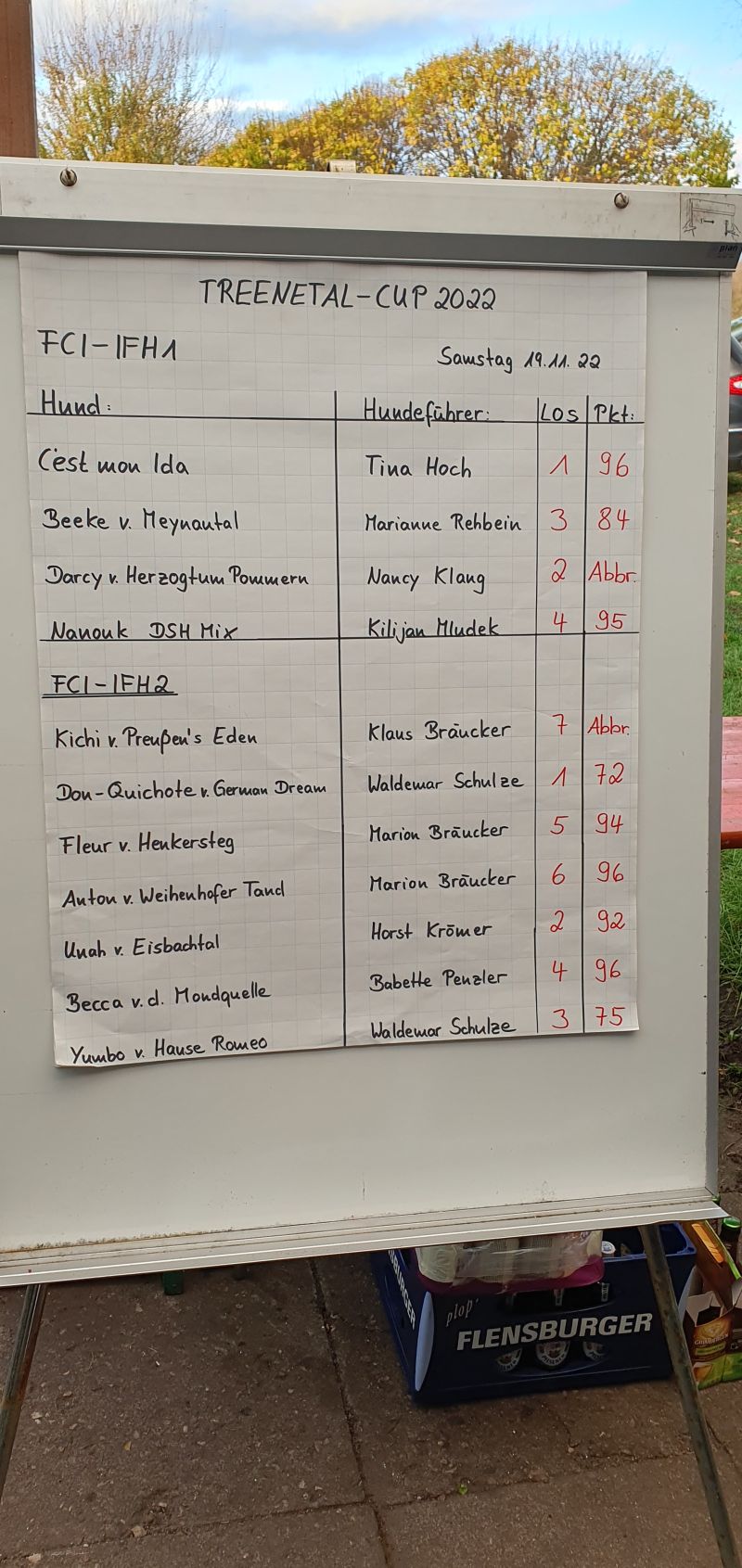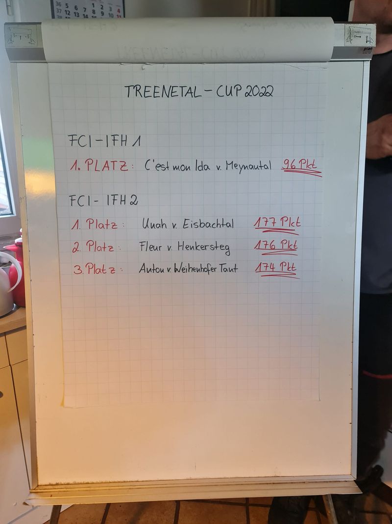 Bei den FCI-IFH2 Startern, wurde das Gesamtergebnis aus den 2 Tagen, zur Ermittlung des Cup Gewinners, zusammengezählt.