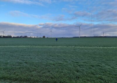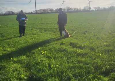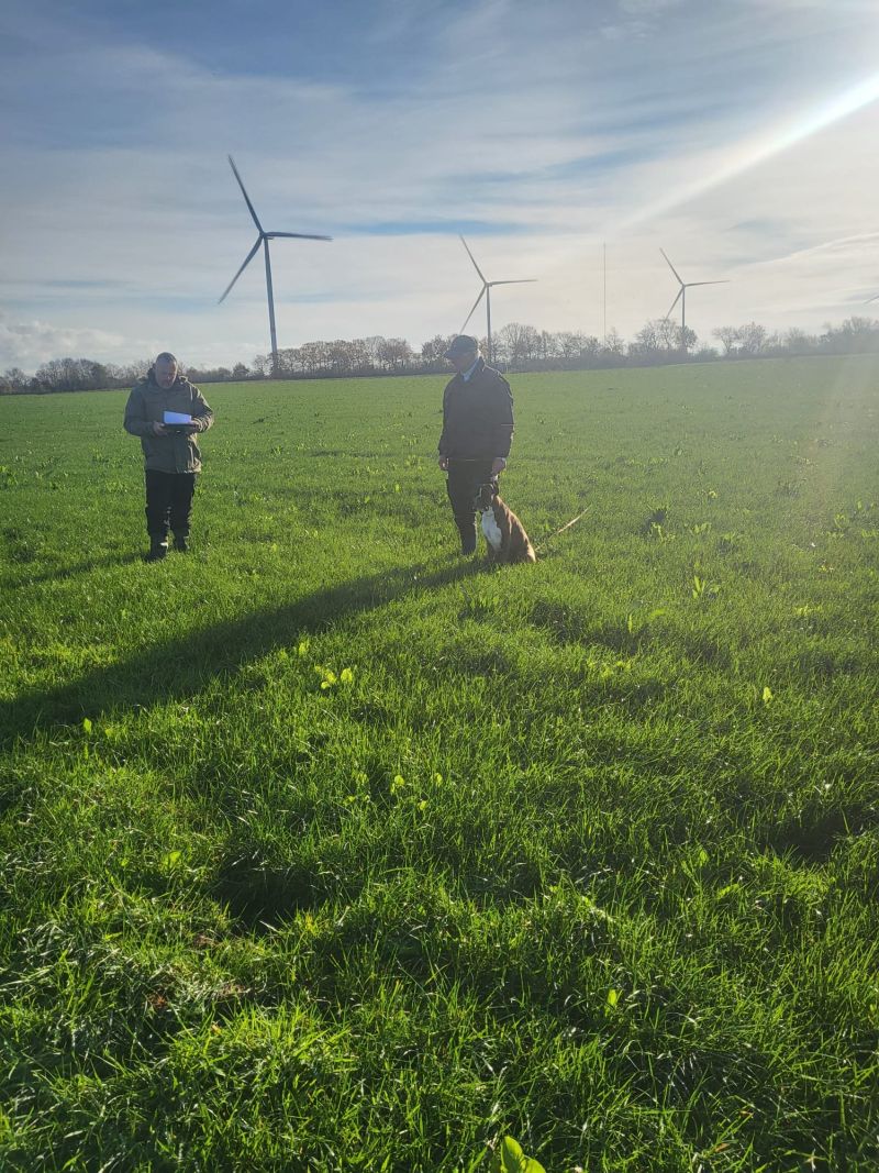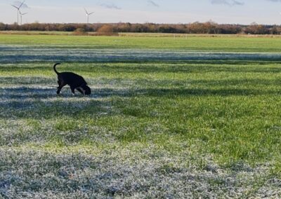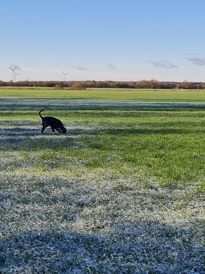 Fährtengelände war an beiden Tagen Wiese. Am Sonntag mit ein wenig Schnee bedeckt, der im Laufe des Absuchens verschwand.